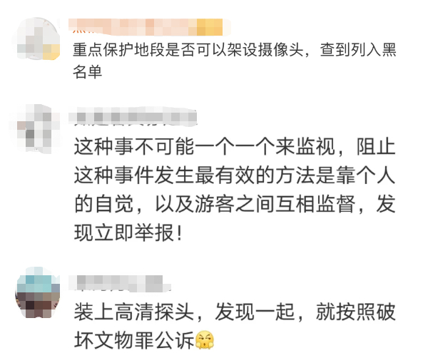 为杜绝刻字现象,今年4月6日,《八达岭长城景区破坏文物行为惩戒办法》正式实施。实施首日,一游客在八达岭长城墙砖上刻字,被工作人员当场抓获,被公安机关行政拘留5日并罚款200元,与另一位望风掩护的同行游客一起被列入“黑名单”。