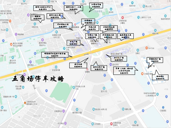 一、发布6.0版五角场商圈、共青森林公园周边区域停车攻略