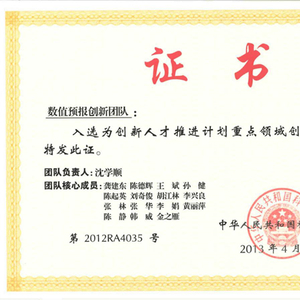 2013年,数值预报创新团队入选科技部“创新人才推进计划重点领域创新团队”,成为我国气象领域首批入选的国家级科技创新团队。