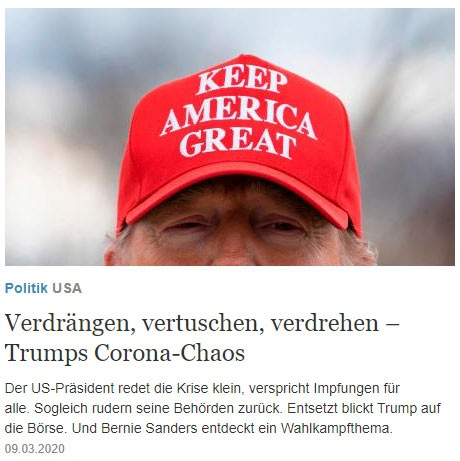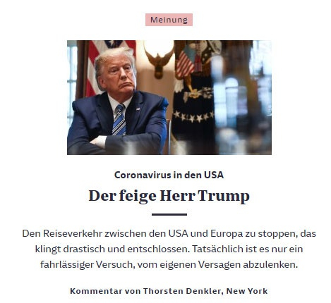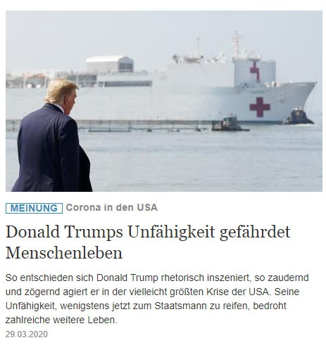 以下三篇文章颇有代表性,反映了德国媒体在疫情中对川普总统的看法。为了完整起见,笔者将它们翻译成中文,以飨读者。