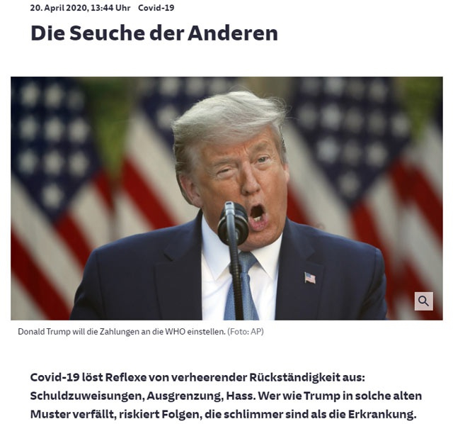 德国媒体秉持“批评主义”原则,不仅盯着本国政府,也用放大镜去审视美国在世界上扮演的角色。在这次席卷全球的瘟疫中,美国(以川普为代表)经常成为德国媒体批评的目标。