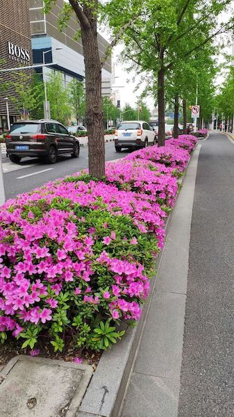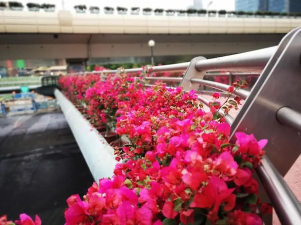 记者看到,静安区的不少道路已成“花街”。南京西路沿路栽种红掌、比哥海棠、西洋鹃(复色)等,华山路人行天桥上,三角梅开得热烈,常德路上的绣球、红掌和何氏凤仙交相辉映。据悉,该区公共绿地花卉布置共用花92万盆,完成花坛花境5278平方米,组合容器6651组,花杆花球152个。