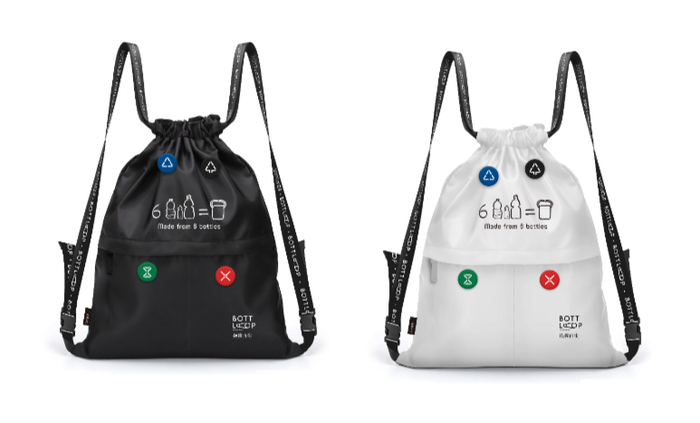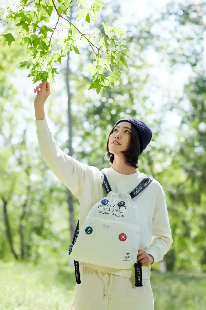 环保国潮品牌抱朴再生BOTTLOOP最近推出了使用废弃饮料瓶制成的“宝藏”抽绳袋。将“可回收垃圾”“厨余垃圾”“有害垃圾”“其他垃圾”的标志与色彩结合徽章设计,简洁的设计符合当下年轻人追求的“留白艺术”。