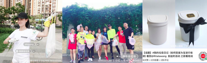 2018年7月,小红书用户Ritatawang发起有关废物垃圾再利用的话题 #我的垃圾日记,把手边的垃圾,改造成一件件可爱的工艺品,并和好友一起跑步捡垃圾,做城市的美容师。这一行动,引发了近万位网友参与行动。