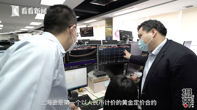 10:05,“隔了五一假期所以这次要注意一下中间期限的问题……”贵金属交易处交易员杜帅帅正和同事在核算今天的上海金参考价格。他介绍说,上海金是第一个以人民币计价的黄金定价合约,对我们国家来说,对市场的定价权有很大的意义。10:06,第一轮上海金参考价上报。