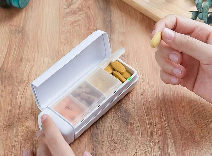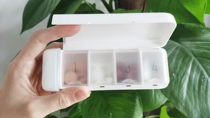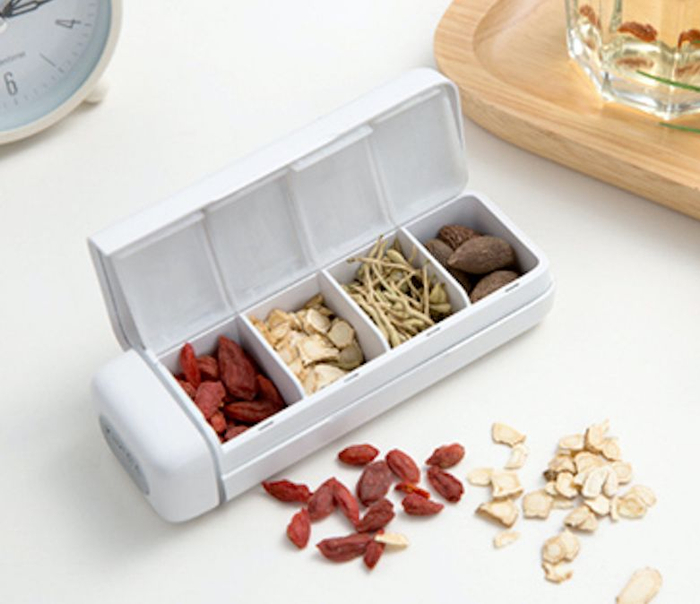 4个药仓可以放不同的药,与手机微信绑定后,就能单独设定每种药的服用时间。