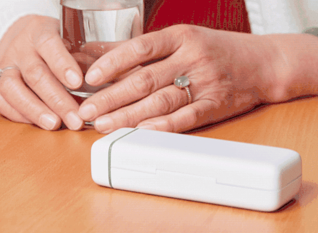 如果在非服药时间打开药盒,它会亮红灯。