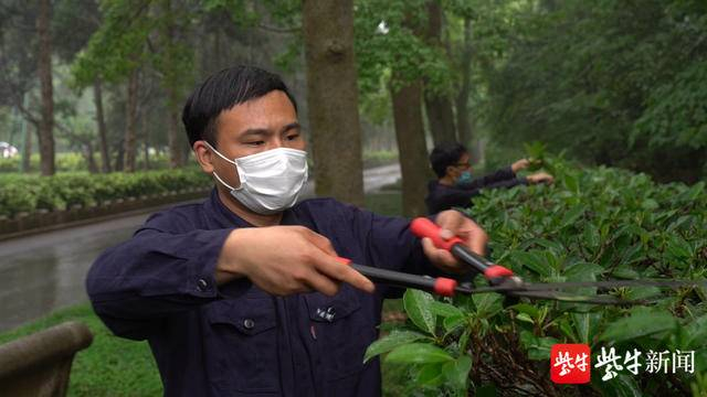 4月30日晚八点,当熙熙攘攘的景区归于平静,中山陵所负责绿化养护的孙健和宫沛南还在中山陵墓道一带巡查,做最后的收尾。“牌坊左侧的冬青球冒新叶了,要赶紧修剪。明天就是五一了,要让游客看到最美的风景。”孙健敏锐地发现原先漂亮球形有些变化,立刻进行调整。