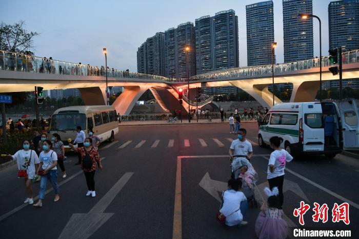 5月1日,“五一”假期首日,四川省成都市新建成的“网红桥”五岔子大桥吸引游客。