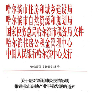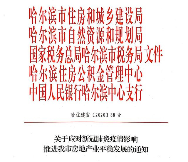 为有效应对新冠肺炎疫情对哈尔滨市房地产市场造成的影响,全面激发市场主体活力,推进房地产业平稳发展,近日,哈尔滨市住房和城乡建设局、哈尔滨市自然资源和规划局、国家税务总局哈尔滨市税务局、哈尔滨住房公积金管理中心、中国人民银行尔中心支行联合发布了十三条新政。中国房地产报记者获悉,新政从缓解房企资金压力、放宽商品房预售许可形象标准、调整商品房预售资金监管、住房贷款延后还贷、公积金政策支持、税率调整等方面做出了明确规定。鼓励引导企业通过线上方式销售,对线上销售的商品房,加大网签备案支持力度。