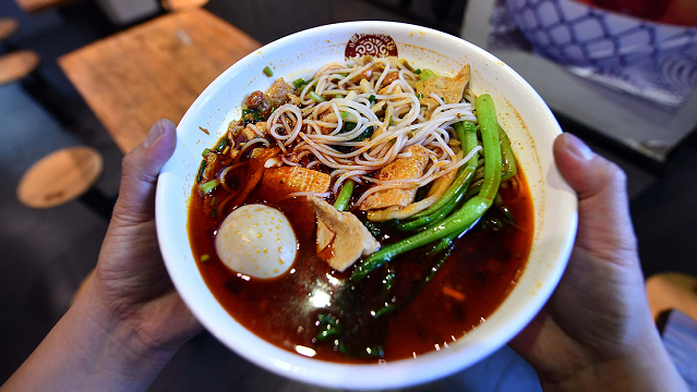 “一个人在满屋子螺蛳粉味道里嗦粉,有一种隐秘又放纵的快乐,很难形容这种上头的感觉。”一位螺蛳粉爱好者如是形容。