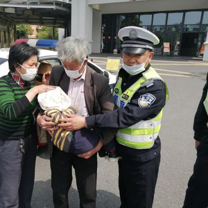 5月2日9时45分许,金山交警支队兴塔检查站民警在路口执勤时,发现不远处的枫展路亭枫公路,有两位老人抱着一个小孩在公交车站等车,看上去非常着急。民警上前询问,发现老人怀里的男孩头部捂着一块毛巾,血流不止。