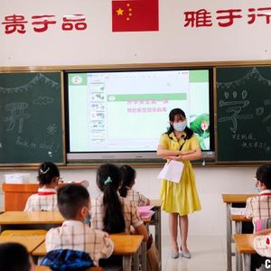 当天上午8时许,桂雅路小学桂花校区少先队员代表集合在该校操场,举行了庄严的升旗仪式。其他学生则通过钉钉直播,开启了一场别开生面的开学典礼。