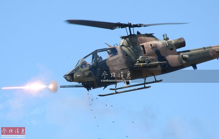 根据伊朗军方记录显示,两伊战争期间,伊朗AH-1J共击落了4架固定翼战机(包括3架米格-21和一架米格-23战机),以及多架米-24“雌鹿”武直。图为土耳其军方AH-1S使用M197速射炮开火瞬间。