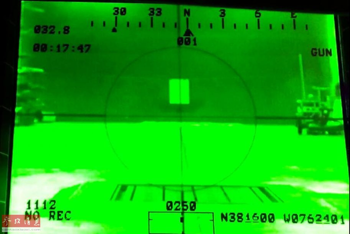 炮手座舱MFD(多功能显示器)显示的前视红外探头画面。