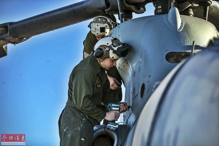 美陆战队地勤人员对AH-1Z进行维护作业。