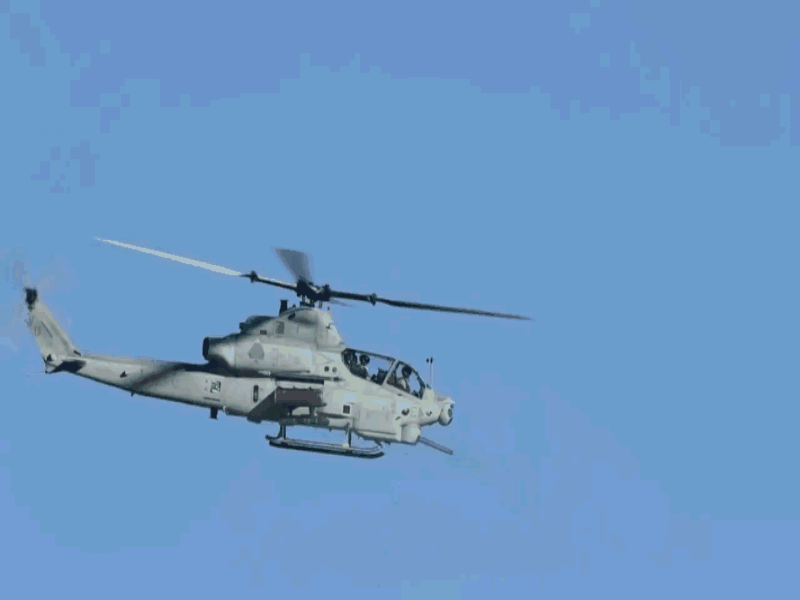 美陆战队AH-1W进行M197速射炮地面校射动态图。