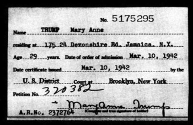 根据文件记载,特朗普的母亲玛丽也是一位追逐美国梦的"蓄意移民",17岁那年拿着母亲给她的50美元离开荒凉的苏格兰刘易斯岛前往美国,一开始在纽约做家政服务工作,而此时,弗雷德·特朗普已经在地产界扬名立万了。在一次舞会上,玛丽认识了大她七岁的弗雷德·特朗普,1936年,俩人步入婚姻殿堂。直到结婚6年后,玛丽才正式成为美国公民。然而,特朗普总统却将母亲的这段"蓄意移民"简史,说成是因为"度假"才来到美国的。
