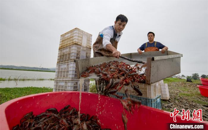 5月9日,农民正在分拣小龙虾供应市场。 赵春亮 摄