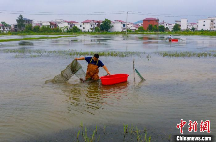 5月9日,江西省新余市高新区水西镇珍田村700亩稻虾养殖基地,农民正在收获小龙虾。该基地通过流转土地发展稻虾养殖带动84户贫困户脱贫致富。据了解,近年来江西省不断推进渔业供给侧结构性改革,小龙虾产业快速发展。2020年江西全省小龙虾养殖规模超过200万亩,养殖产量有望突破21万吨,全产业链产值将达到200亿元以上。王剑/文 赵春亮/摄