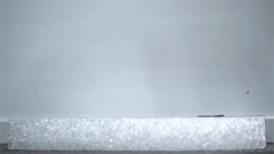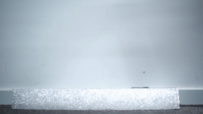我们拿个球丢下去,棒球非常有弹性的蹦起来了。