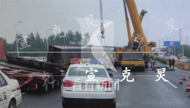 凌晨大卡车撞上绿化隔离带 51米长桥梁钢梁侧翻