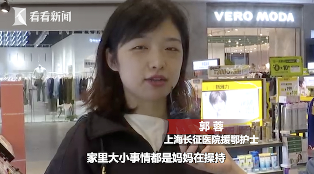 长征医院援鄂护士郭蓉:“因为我去武汉已经50多天了,家里面的大小事情都是妈妈在操持,所以我也想借这个母亲节机会送给妈妈一个礼物,代表我一个小小的心意。”
