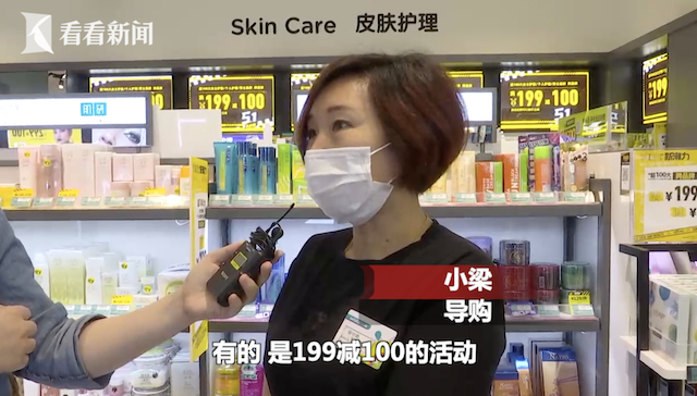 导购员介绍了适合妈妈用的护肤品,最终郭蓉选择了一套紧致补水的国产护肤品,折扣力度低至对折。