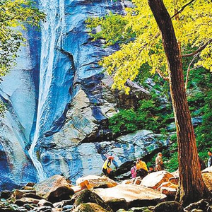 图为游客们在河北省兴隆县九龙塘瀑布游玩 本报记者 宋美倩摄