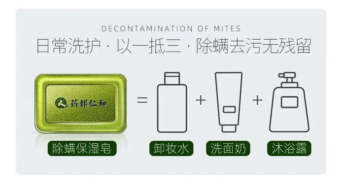 1. 除螨保湿皂=卸妆水+洗面奶+ 沐浴露。