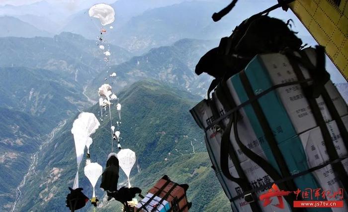 瞬间,完成惊天一跳,雪白的伞花朵朵绽放,飘向震中孤城茂县。