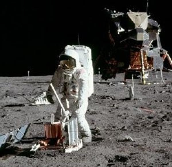 (美国阿波罗宇航员巴斯·奥尔德林(Buzz Aldrin)在月球表面部署地震仪)