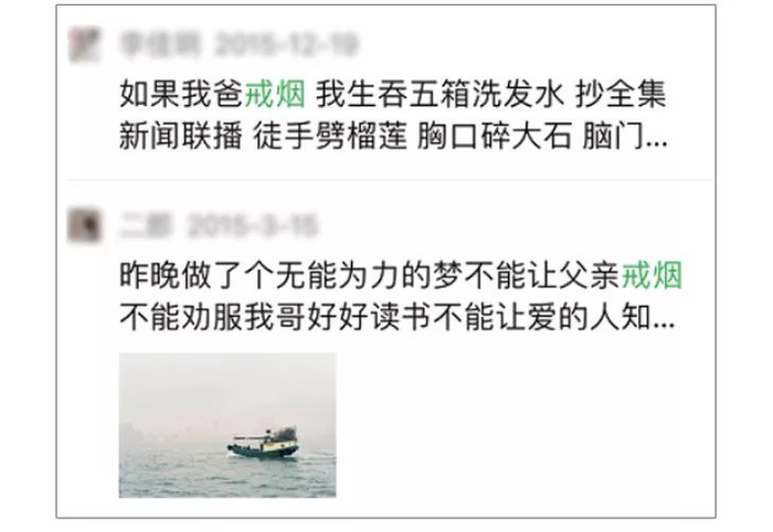 几乎每隔一段时间,就能看到朋友圈里的人抱怨“老爸戒烟又失败了。”