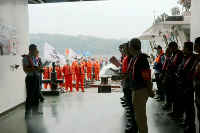 “南溪海事处,南溪海事处,这里是‘祥云077’这里是‘祥云077’,我船右舷1名船员落水,右舷1名船员落水,穿有救生衣,抛投了一个救生圈,请求救助,请求救助。”“‘祥云077’‘祥云077’,这里是南溪海事处,这里是南溪海事处,已确认右舷1名穿救生衣船员落水,请你不要惊慌,请你不要惊慌,船长请你稳住船位,我处马上派艇搜救。”