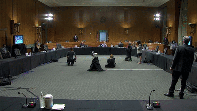 视频听证会与会者背景吸睛 专家和参议员反差大