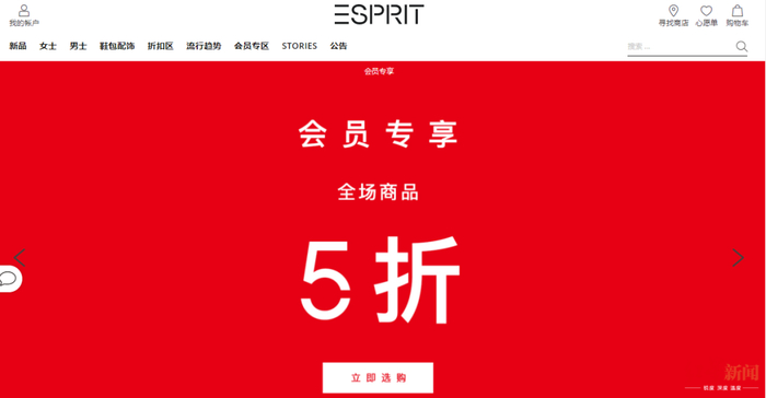 ESPRIT官方商城显示进行折扣清仓