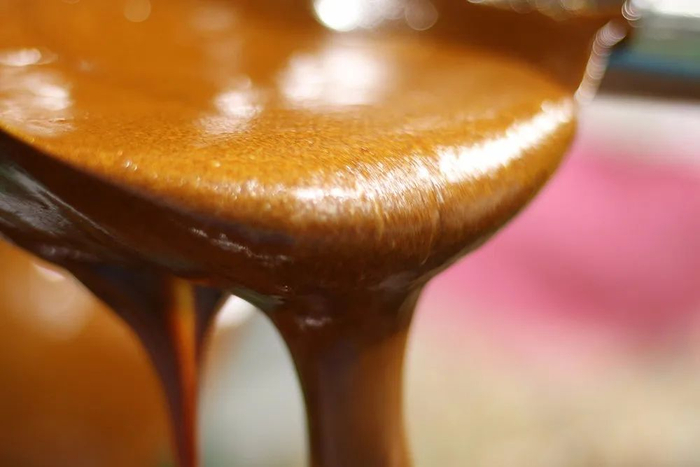 阿俊告诉我,他经常和父亲24小时轮流守在锅灶旁边,整个熬制过程中不停搅拌,非常考验眼力和手力,要很快能判断出糖汁的状态,老了、嫩了都不行,一定要恰当火候才可以。
