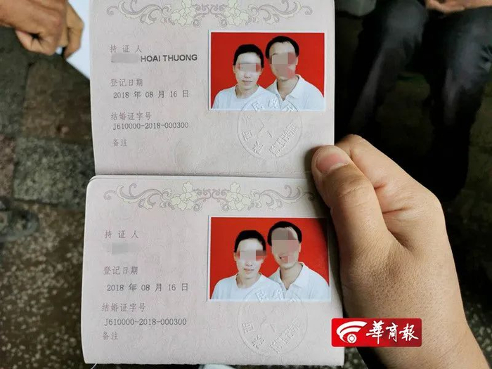 2018年8月,回到陕西后,吴兵和该越南女子领了结婚证并举办了婚礼。结婚一个月后,该女子提出她奶奶生病了,想回去看看,吴兵便将其送回越南。吴兵说,到了越南以后,该女子却并没有回家,而是到了她舅舅所在的那个地区,然后就不见了踪影,吴兵找了几天都没找到,只能无奈回国。同时,他才得知,该女子已经结婚,而且还有一个3岁的孩子。
