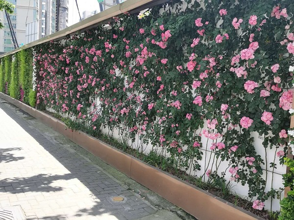 不过,月季一年能开三季,从4月到11月都有花,花朵能呈现“花团锦簇”的效果。而从杭州等城市的经验来看,月季也能适应高架条件,若管养得当,8至10年都不需换花。综合评判下,月季仍“中选”成为高架主花。