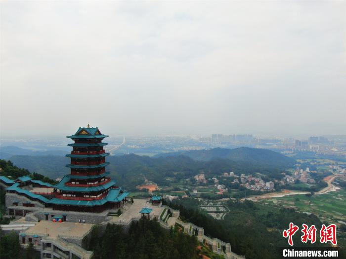 航拍江西48.9米高“信丰阁” 饶谷多栗人信物丰