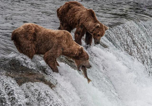 阿拉斯加卡特迈国家公园的棕熊抓鱼