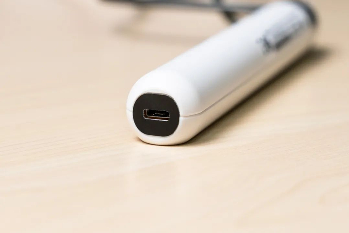 充电口位于手柄尾部,用标准Micro-USB即可为设备充电。
