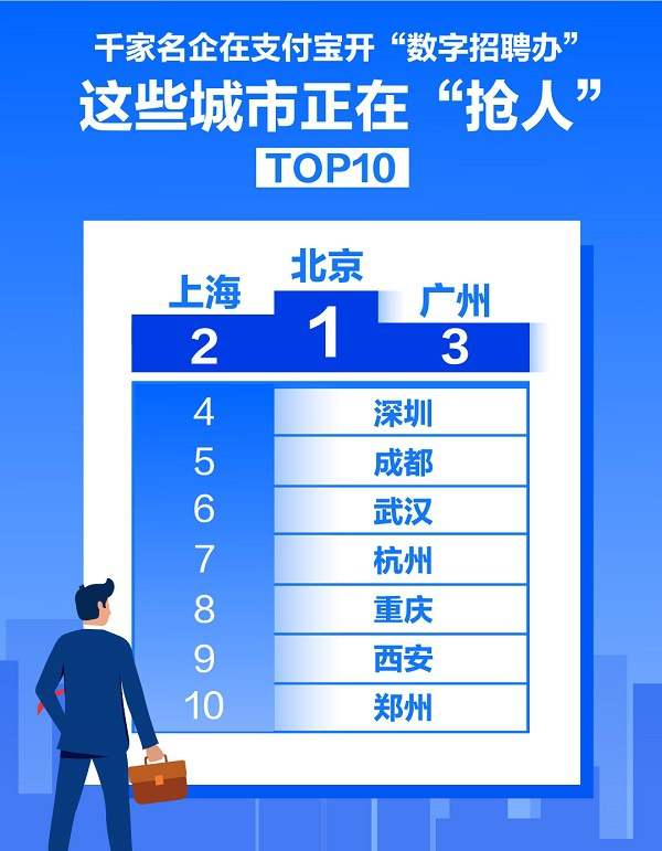 千家名企上支付宝开“数字招聘办” 上海成为招聘需求量第二大城市