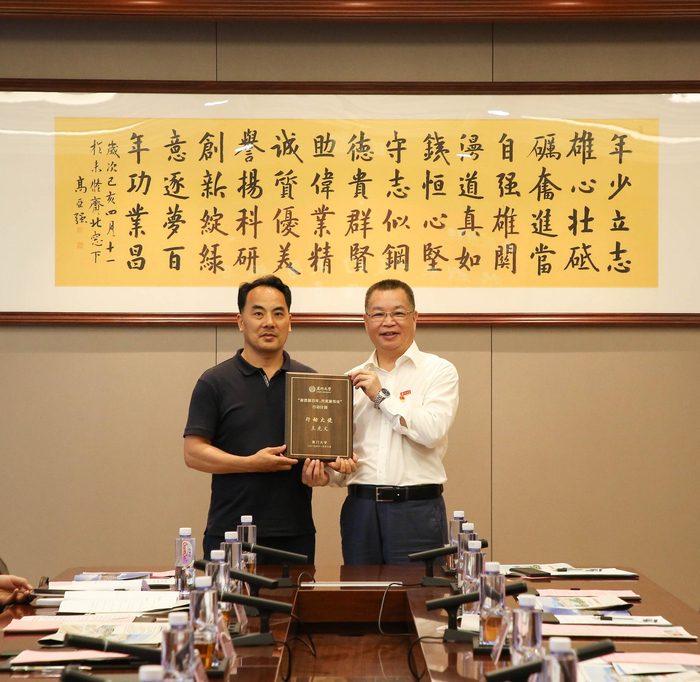 会上,叶世满向王光文颁发了“厦门大学‘奋进新百年、共筑新伟业’行动计划”行动大使荣誉牌匾,并赠送纪念品。教育发展基金会秘书长曾云声向吴两同递送《“漳州校友会励学金”捐赠反馈报告》。