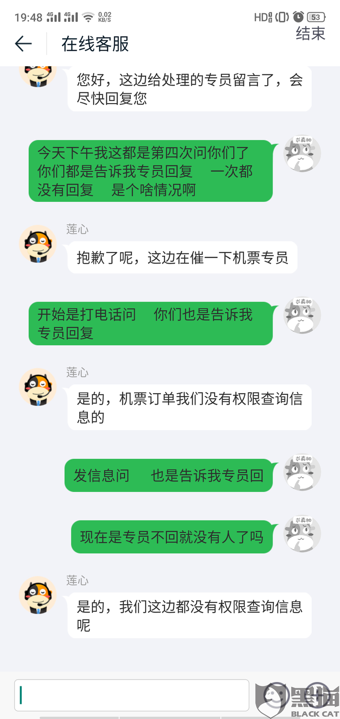 消费者“用户7451900443”在5月17日向黑猫投诉平台再次反映:“从一月27号开始退票 到现在都没有给时间什么时候才可以处理 现在还是没有一点点用 都说是只有等还是等 反正就是不知道什么时候才可以退款”