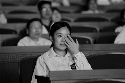 演出现场。观众席上,援鄂医疗队队员代表不时为表演所感动而抹泪。