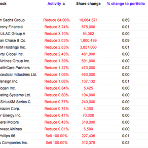 遭到清仓的两只个股分别为能源公司菲利普66和旅行者保险(TRV)。