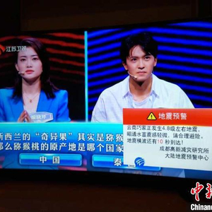 昭通市水富县广电电视地震预警。(成都高新减灾研究所供图)