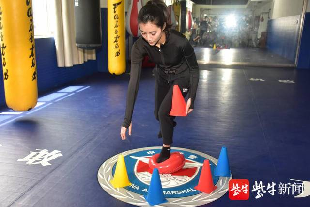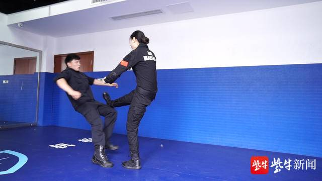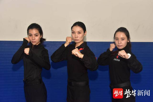 东航江苏公司总共300多名空保中,只有5位女子。昨天,其中的三位来到媒体镜头前。这是她们进入这个行业以来的首次亮相。颜值高、身材好、语气柔美,是记者对她们的第一印象。不过,几招下来,她们就把男空保来了个“过肩摔”,也是非常“能打”了。“摔得挺狠哪!”“没事,他们跟我们训练也不留手!”姑娘们转转头,转头又拿起了一根甩棍……