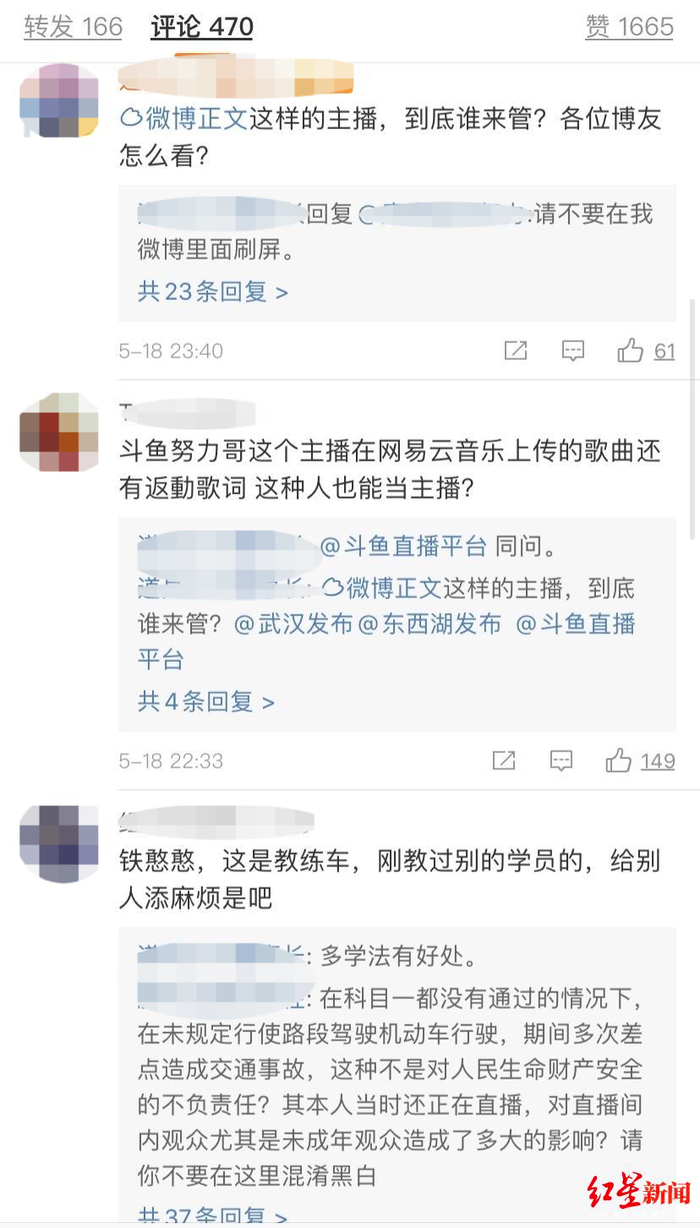 针对此事,记者也采访了直播平台方。斗鱼平台负责对接媒体的工作人员表示,在直播中出现这种比较明显的违规行为,平台工作人员发现后会直接进行关停。接下来,主播运营工作人员会专门跟该主播进行沟通,“如果他认识到自己的错误,并有悔改的意向,会对其进行教育,只关停这一场直播,但如果他仍旧继续犯错,关停的时间将会延长。”红星新闻记者也从成都市公安局交通管理局了解到,他们已接到关于此事的举报,现已找到两位当事人进行询问,具体情况正在调查中。